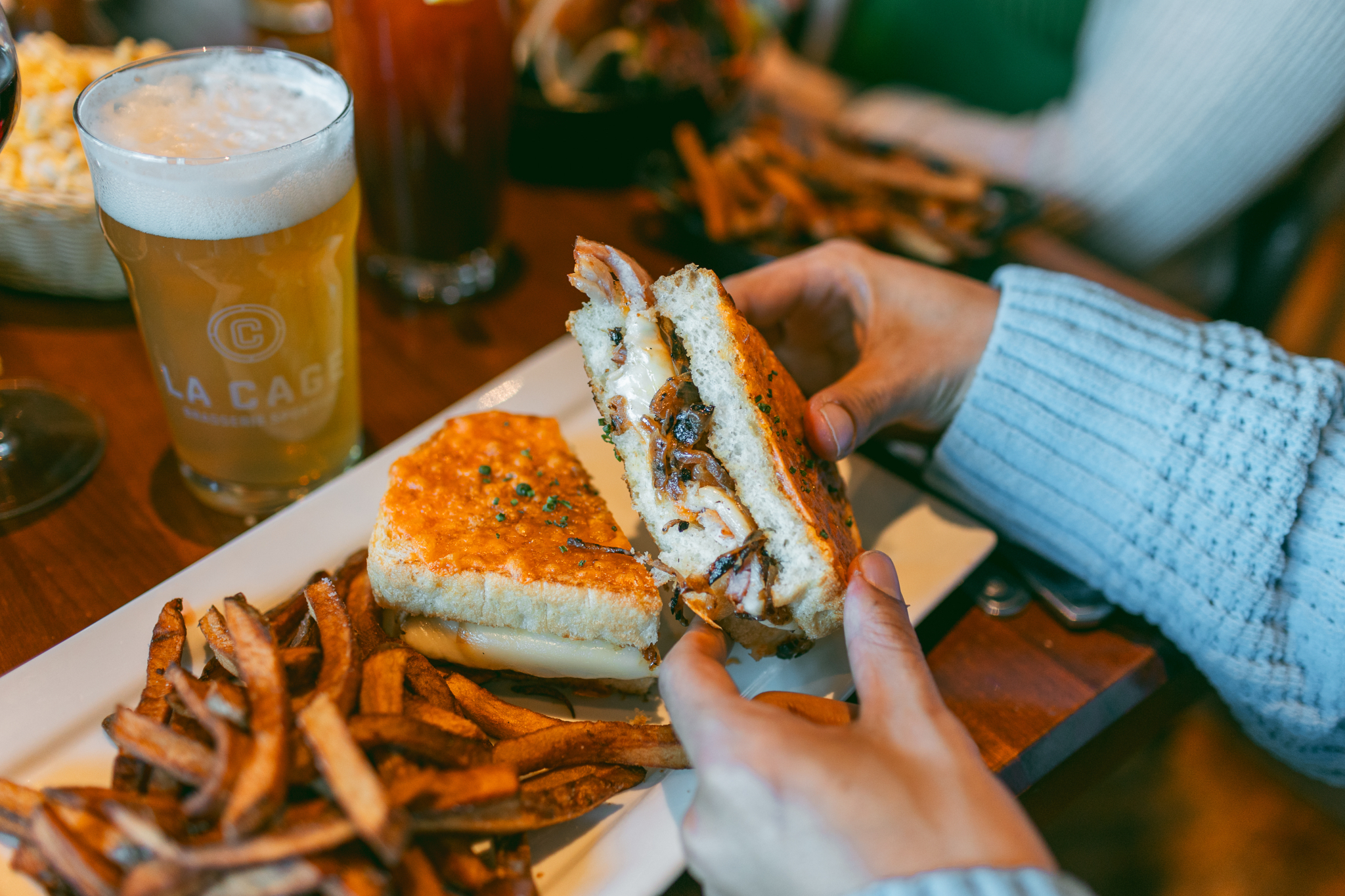 Homemade country bread, smoked Gouda, sharp Cheddar, bacon and caramelized onions.